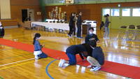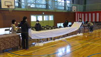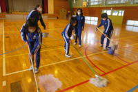 22日の卒業式に向けて、体育館のワックスがけ及び式場作成が行われました。