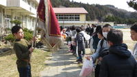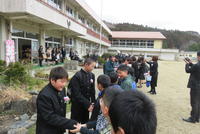 最後は在校生・教職員全員で卒業生の見送りをしました。卒業生たちは在校生たちとの別れを惜しみながら、名残惜しそうに学び舎を後にしていました。