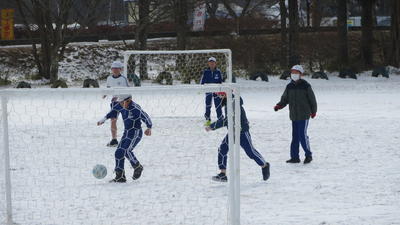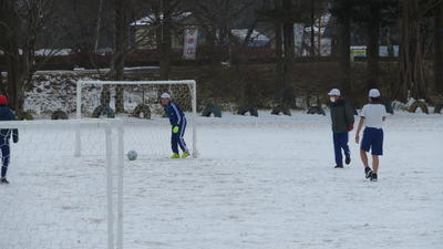 一面を雪に覆われた校庭ですが、子どもたちはむしろうれしそうです。