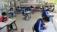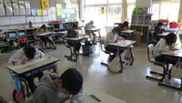 今日は、2年生から6年生までは漢字検定に挑戦です。