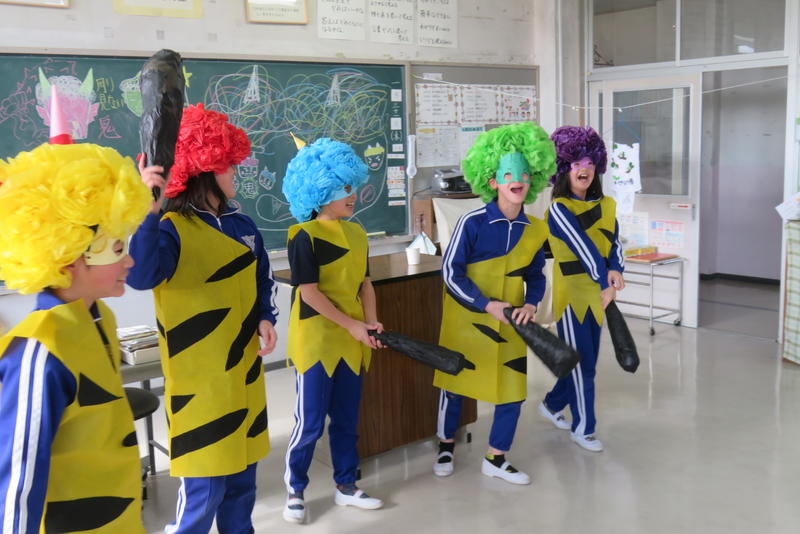 年男・年女の5年生が中心となって各教室を回ります。