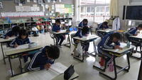 日頃の学習の成果を試す大事なテストになります。どの児童も一生懸命にテストに取り組んでいました。
