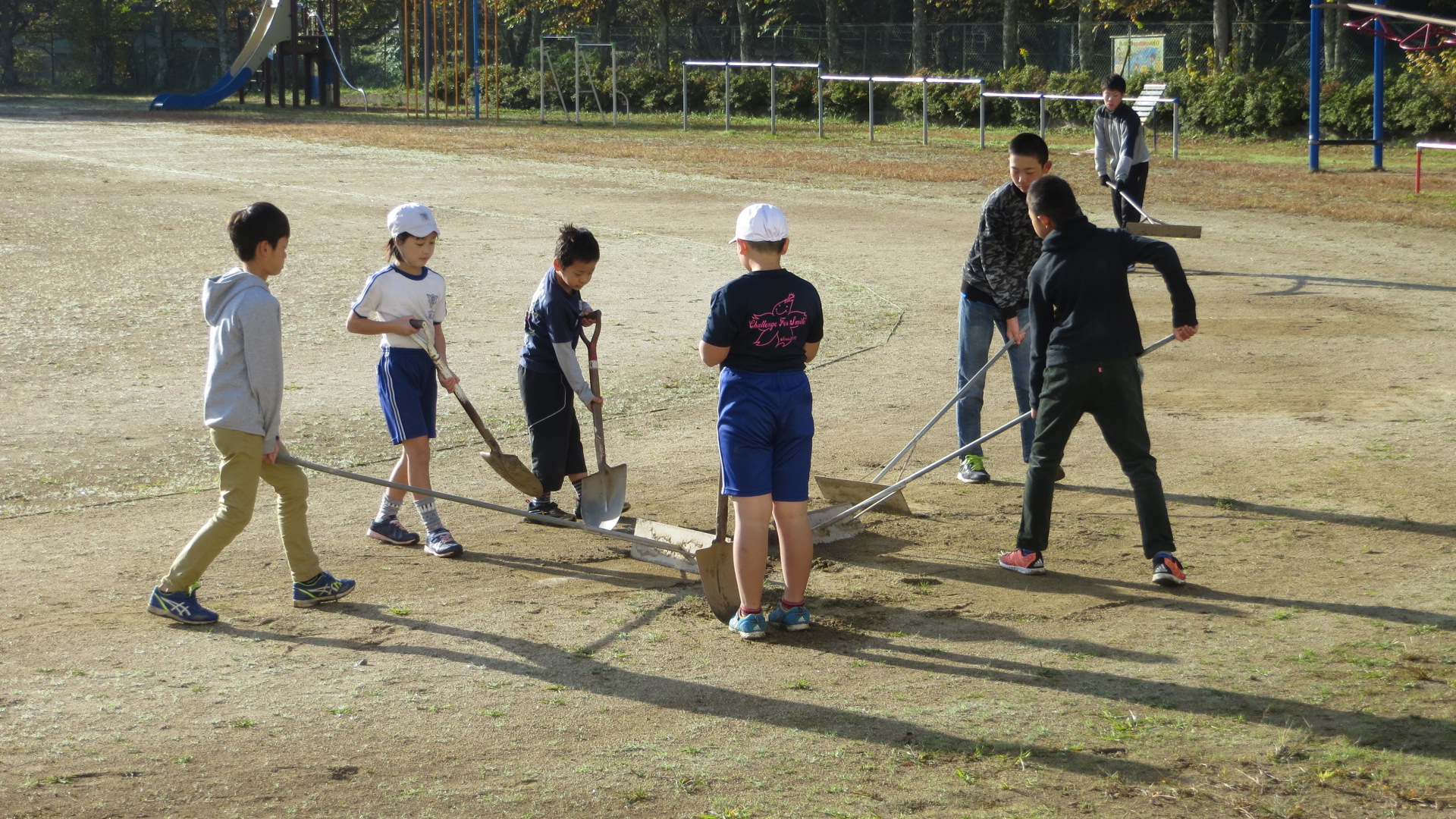今日は運動委員会が朝から校庭整備を行ってくれましたので、その様子をアップします。