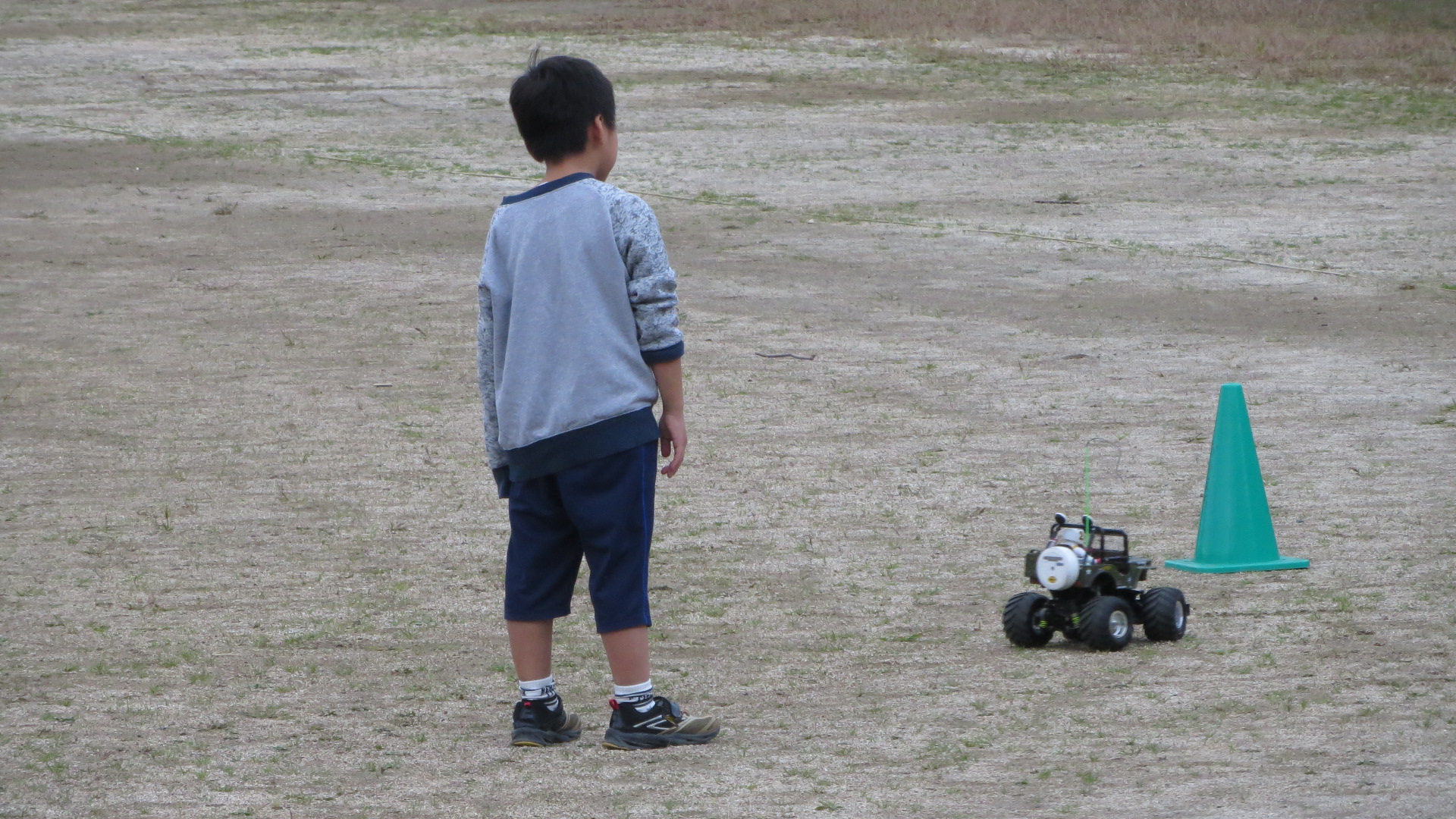 コーンを一周して自分のところまでの操縦に悪戦苦闘していました。