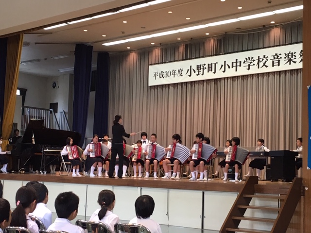 今日は午後から町の音楽祭に、全校生で参加してきました。
