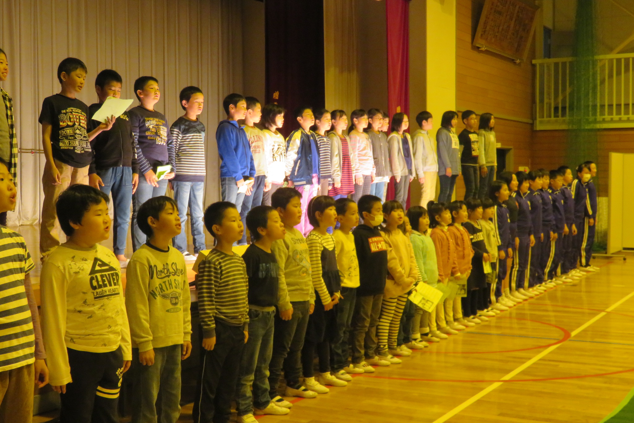 学習発表会で歌う全体合唱の練習を行いました。