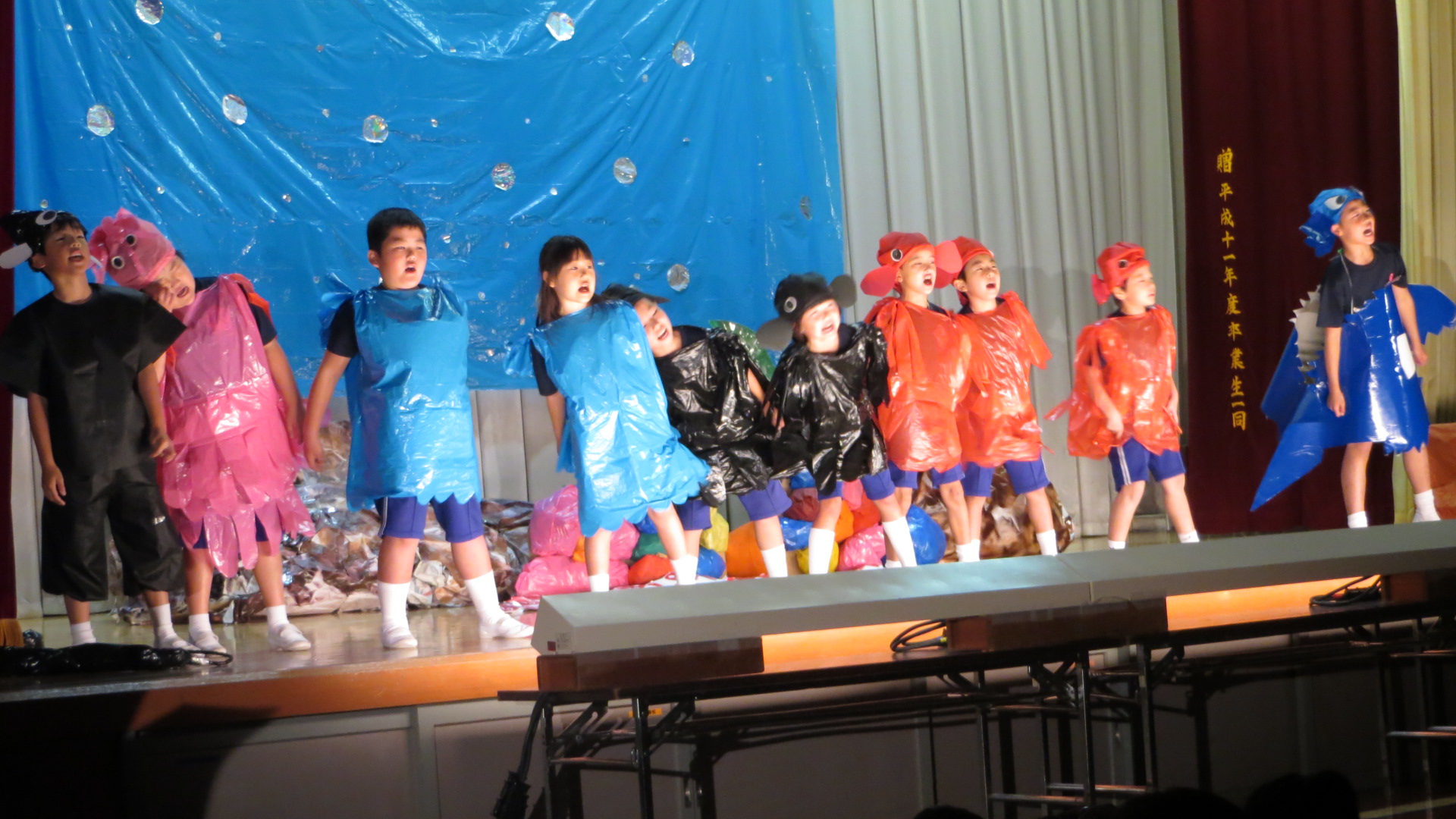 児童たちは、今まで積み重ねてきた練習の成果を十二分に発揮し、自分の役を熱演していました。内容も、各学年ごとに工夫した劇を発表しました。考えさせられたり、大いに笑ったりと、思わず劇に引き込まれてしまう演出で、大変素晴らしかったです。