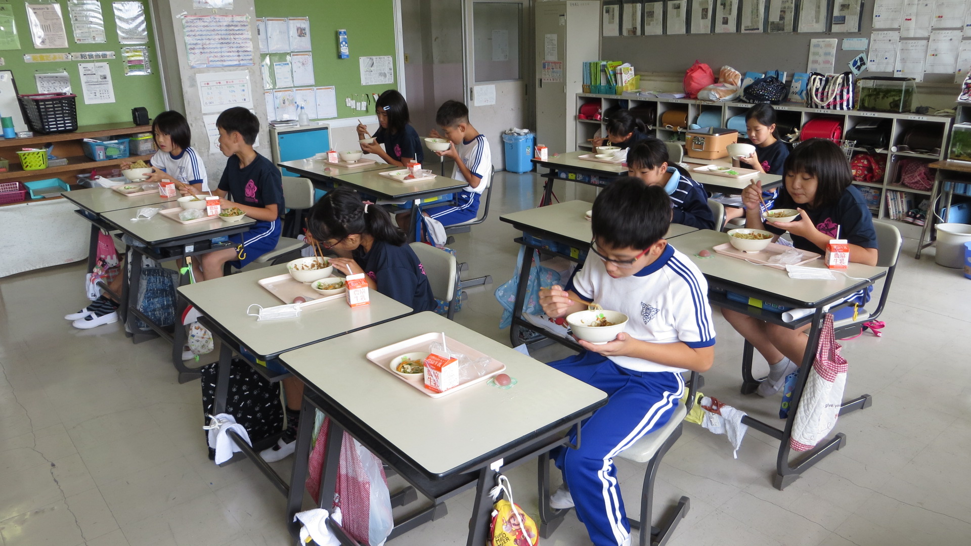 各学級の給食の様子を紹介します。