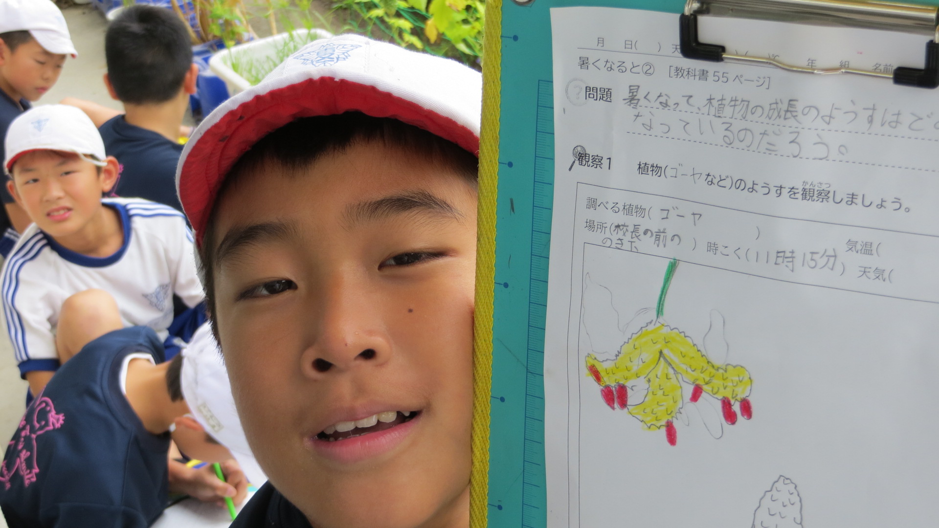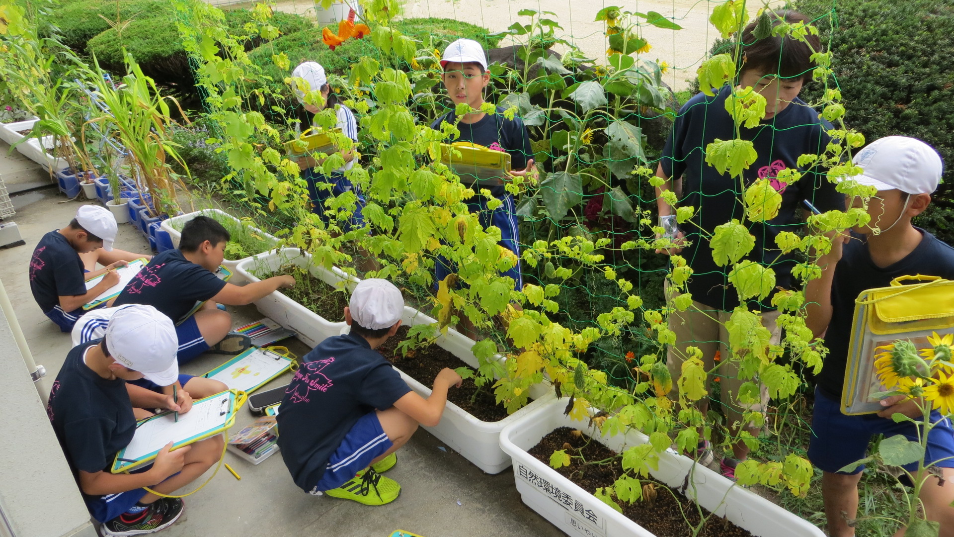 2018年9月3日 11時46分4年生が校長室前でゴーヤを栽培しました。