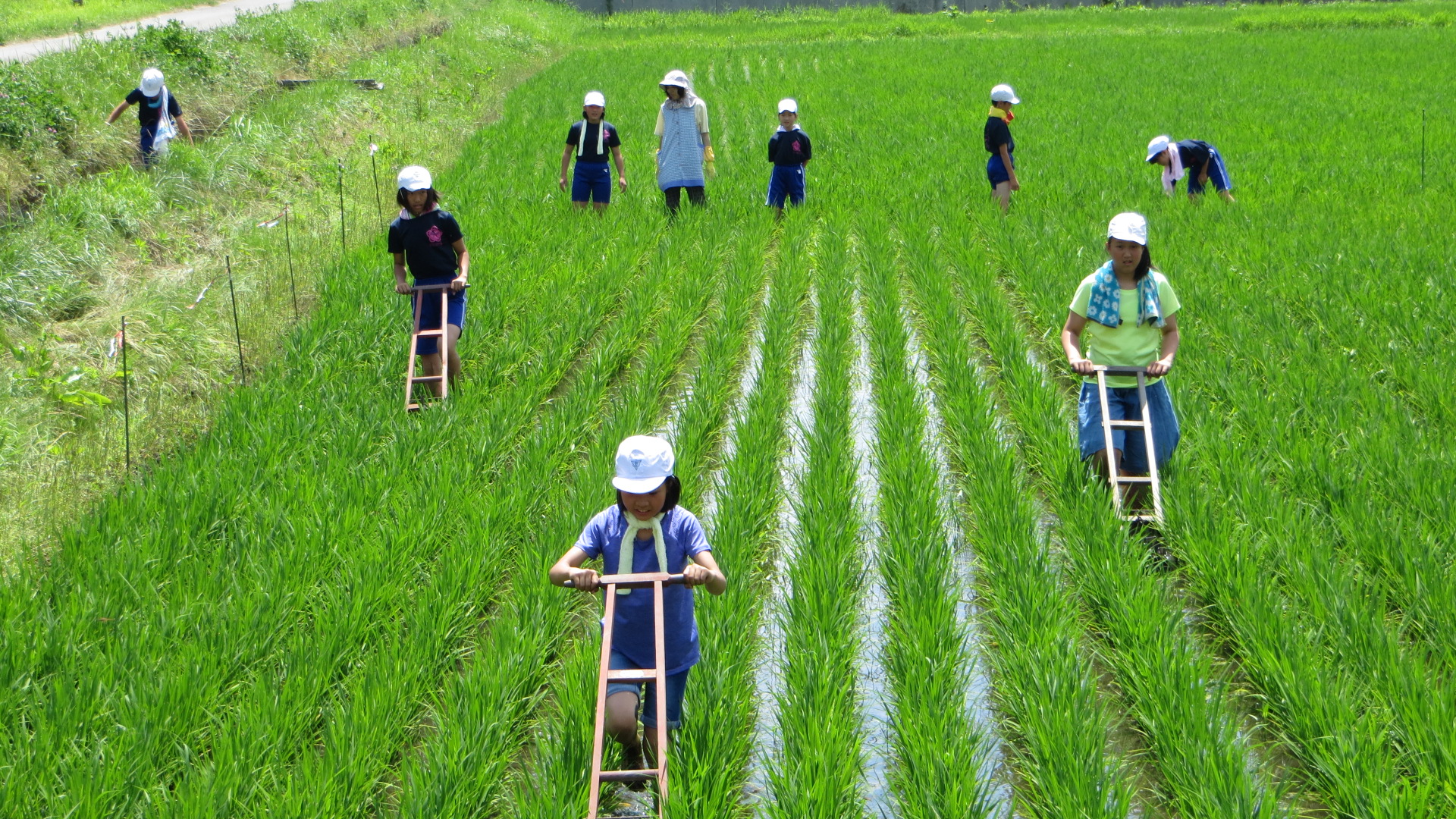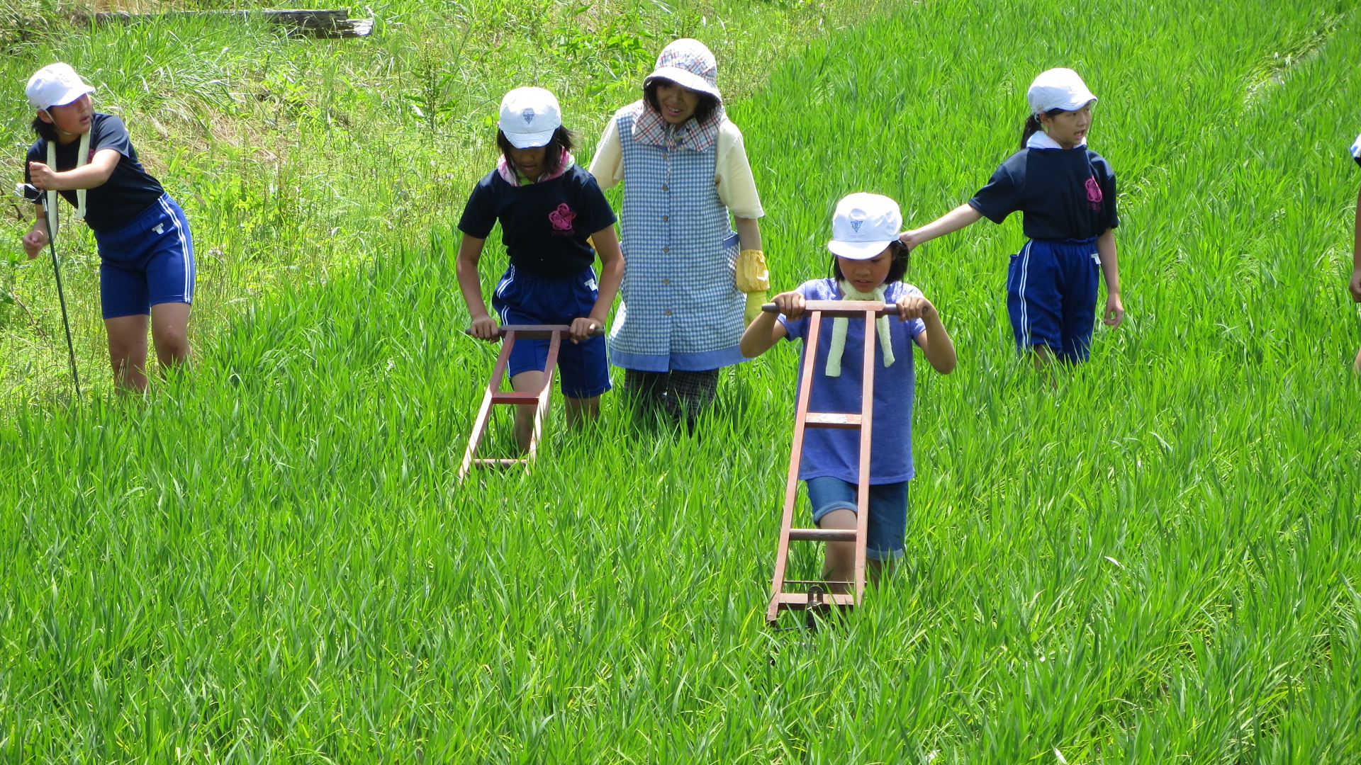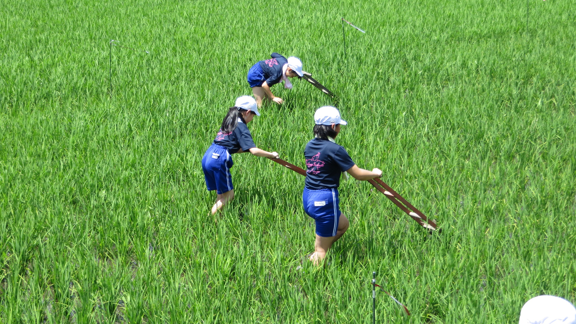 本日3校時に、5・6年生が学校田の除草を行いました。