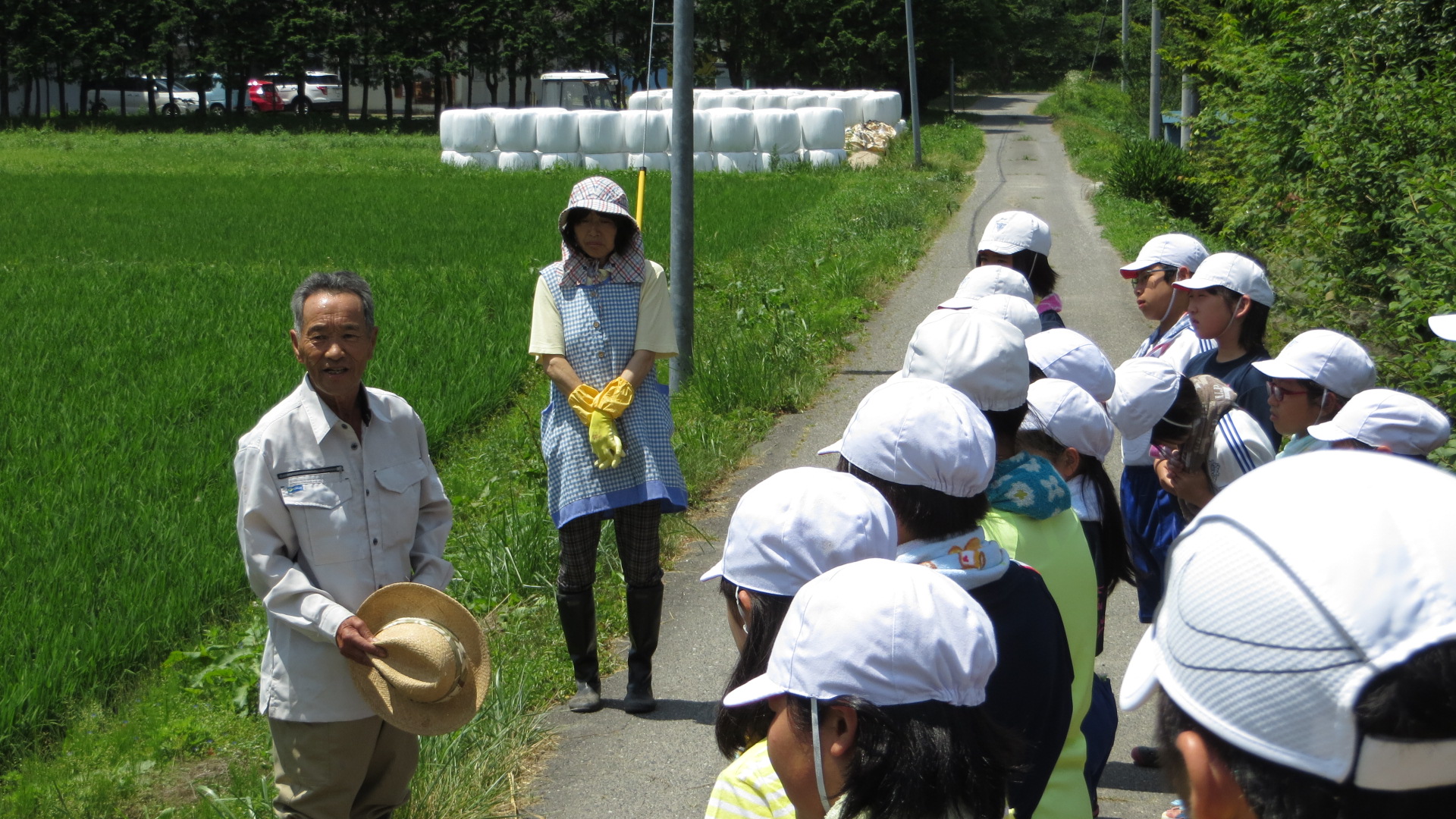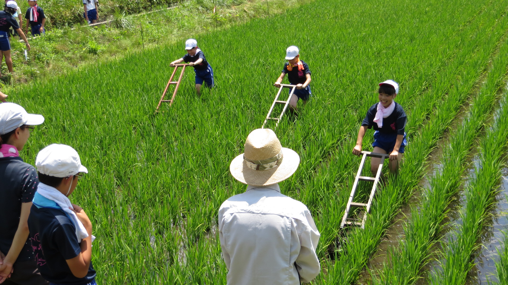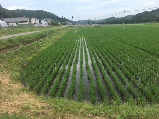 本日3校時に、5・6年生が学校田の除草を行いました。