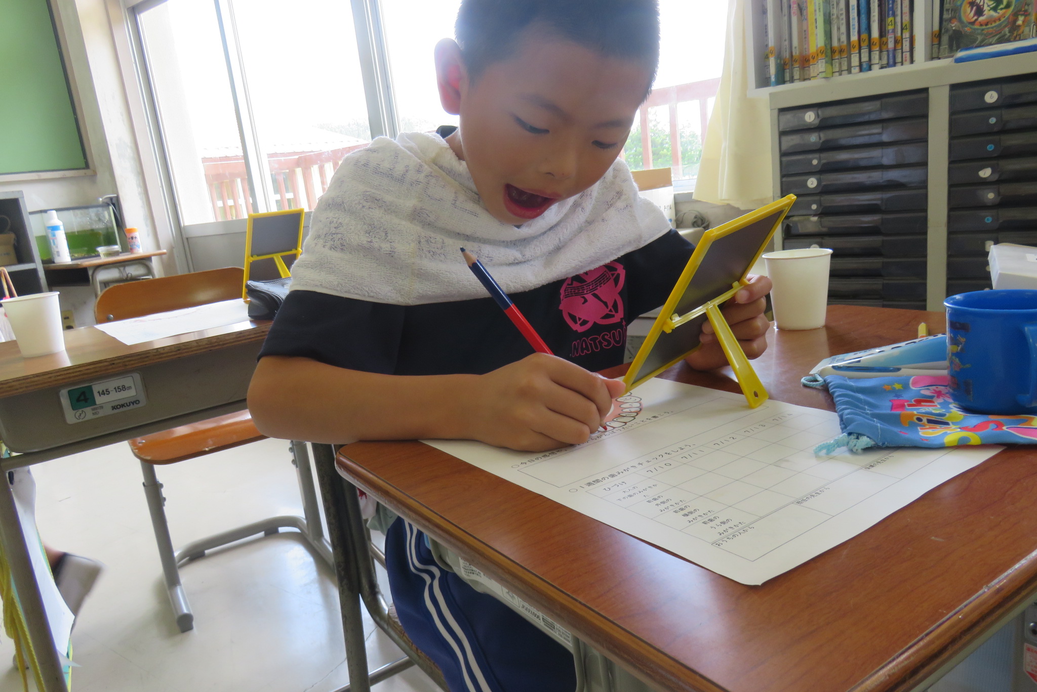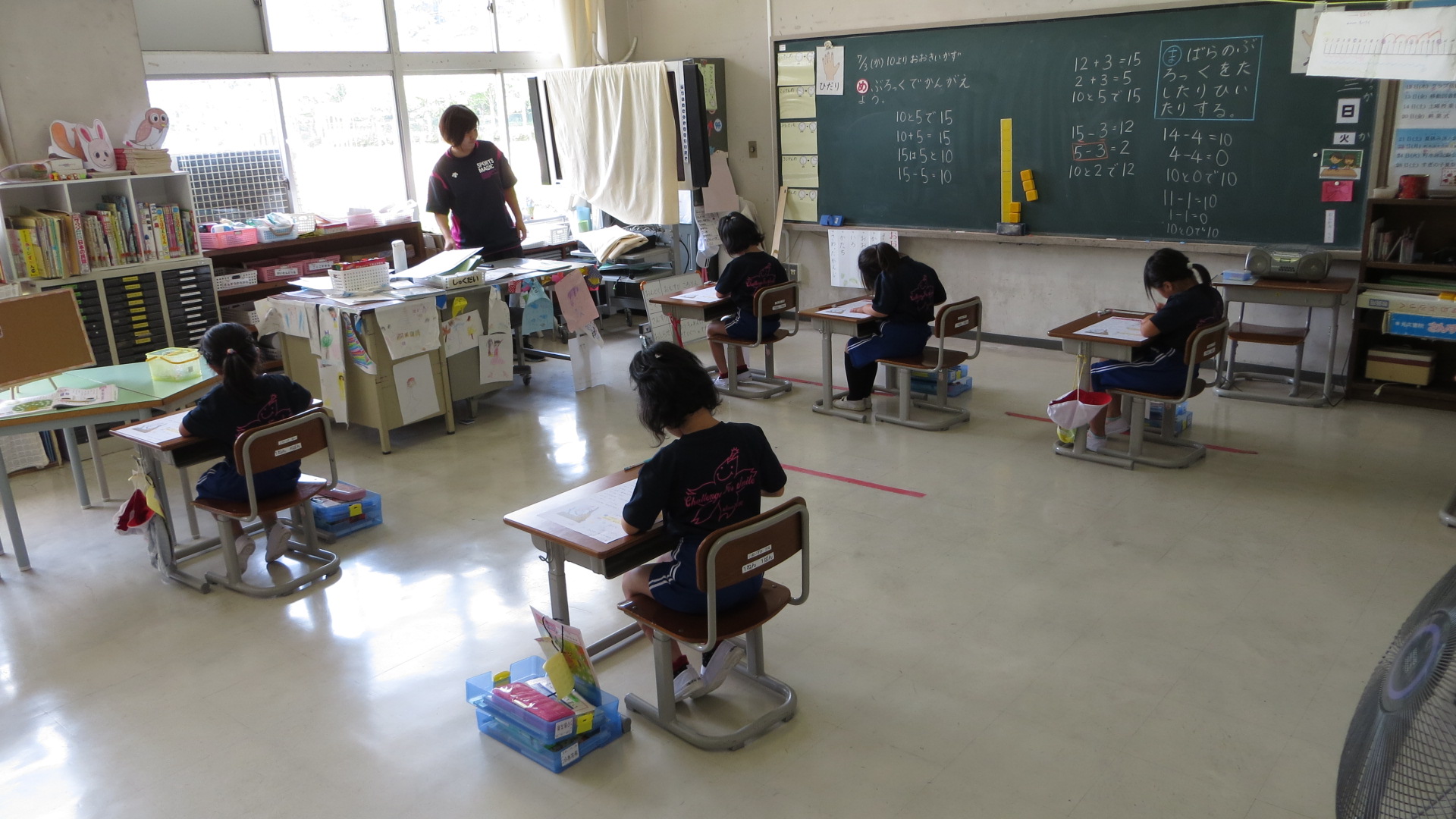 全校テストは明日までで、明日は算数のテストが行われます。