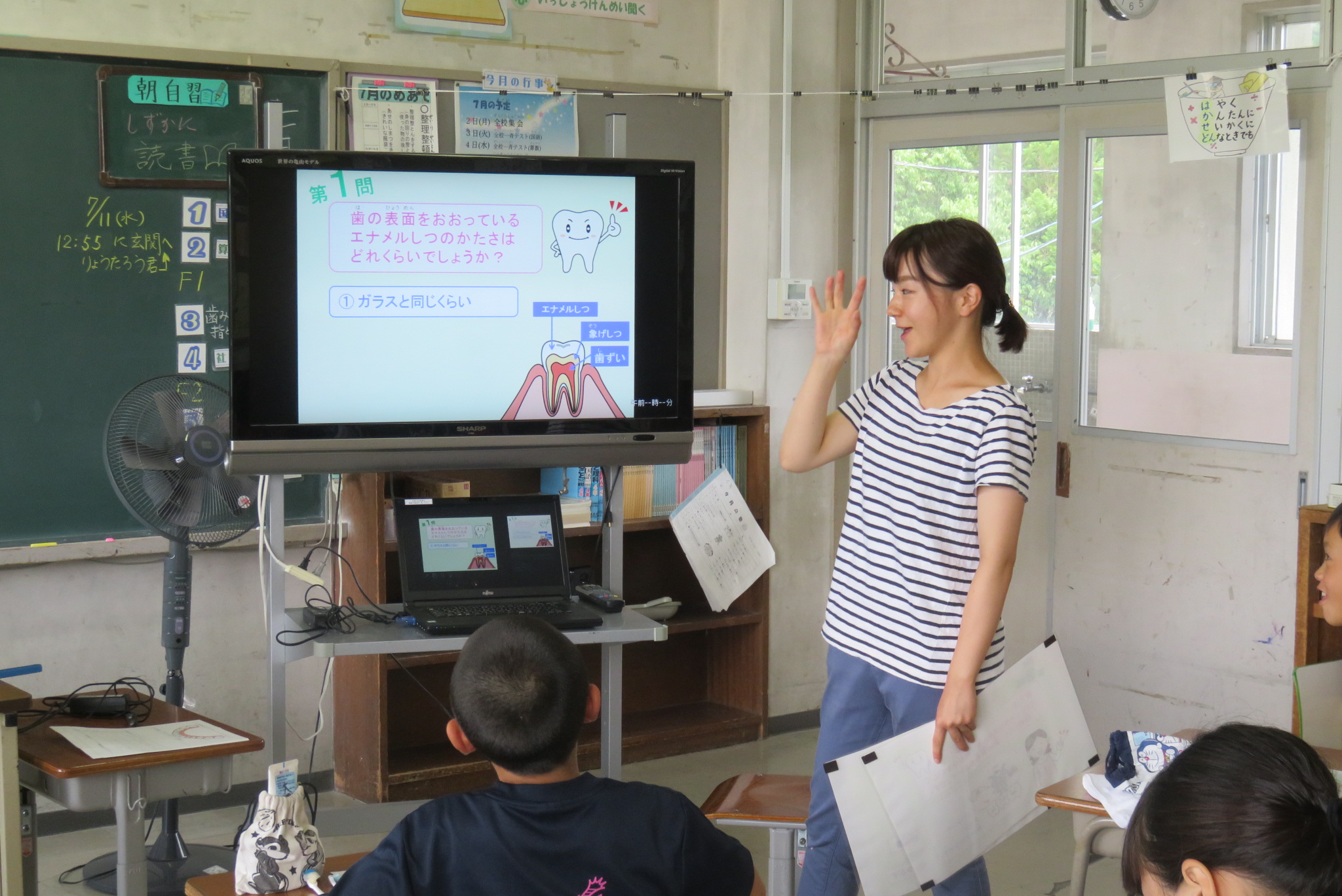 2018年7月12日 10時49分10日(火)に4年生で、養護教諭による歯磨き指導が行われました。