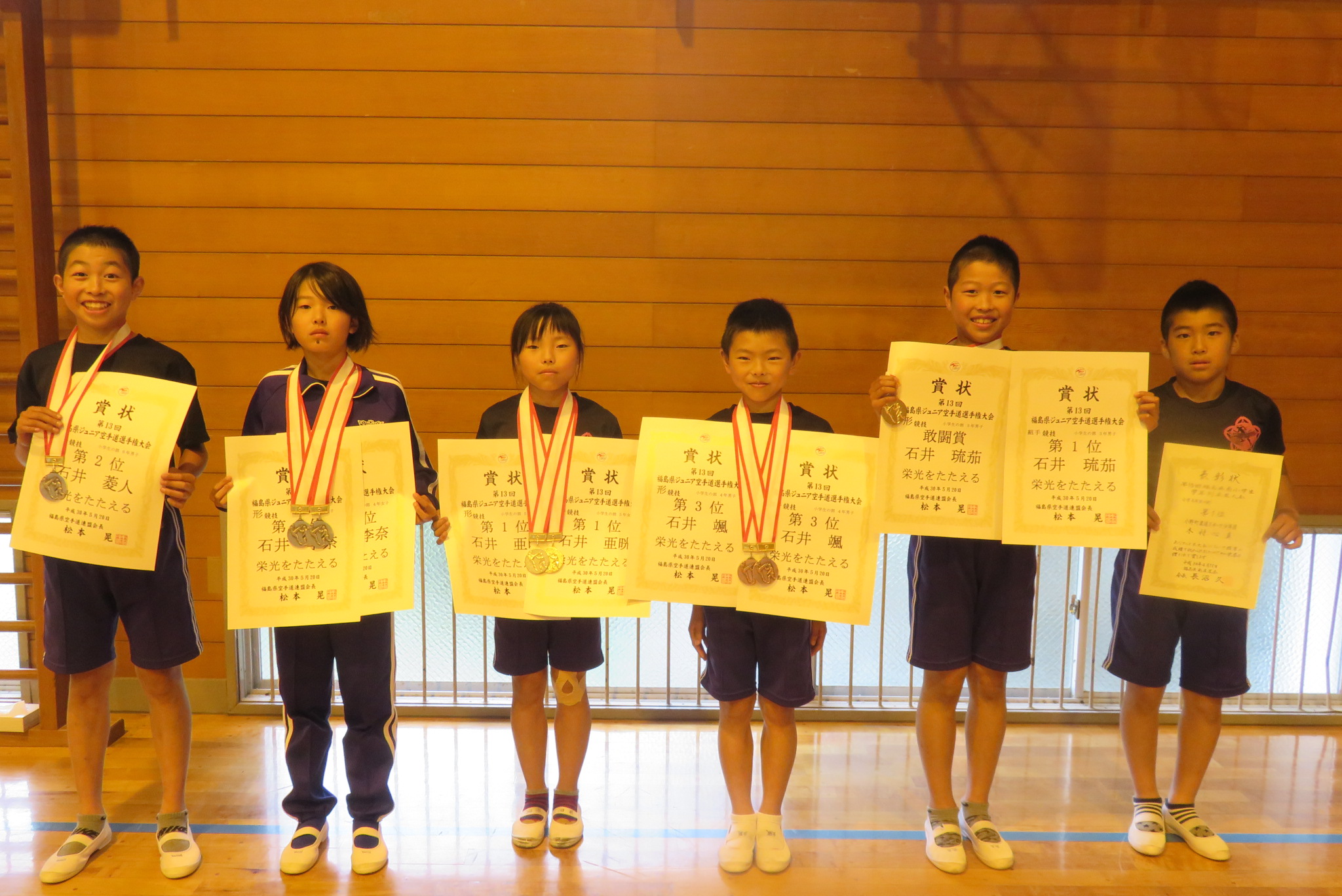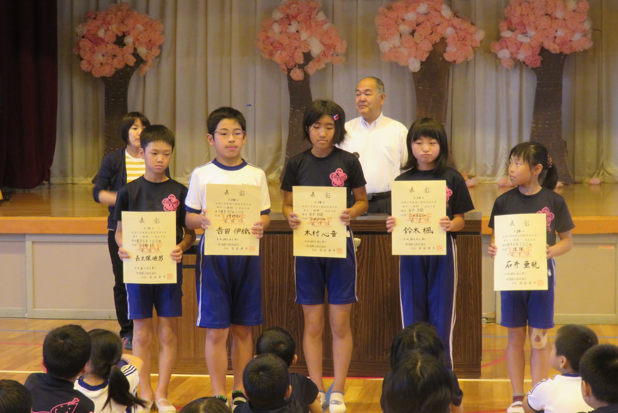 今回は、まず陸上、空手、柔道の表彰が行われました。