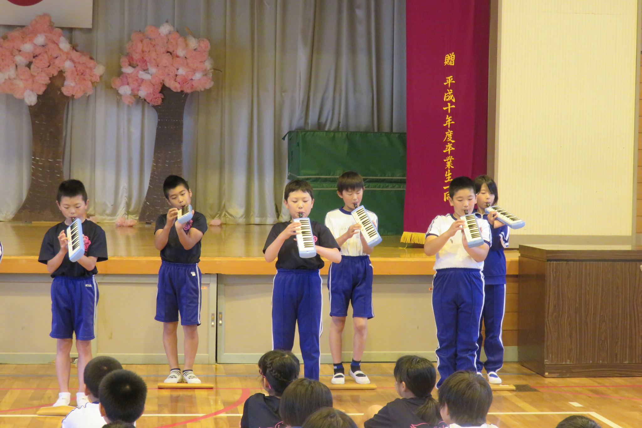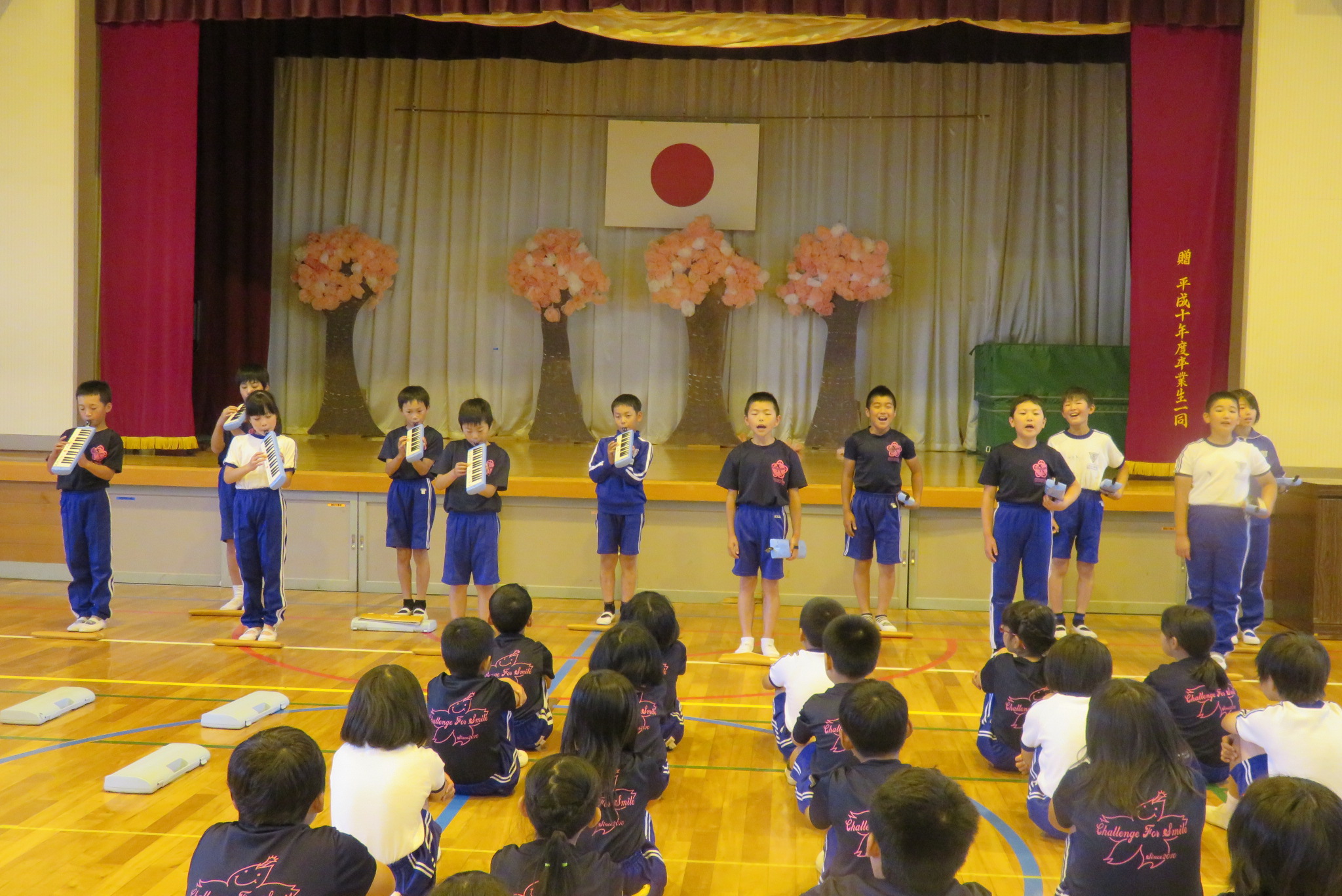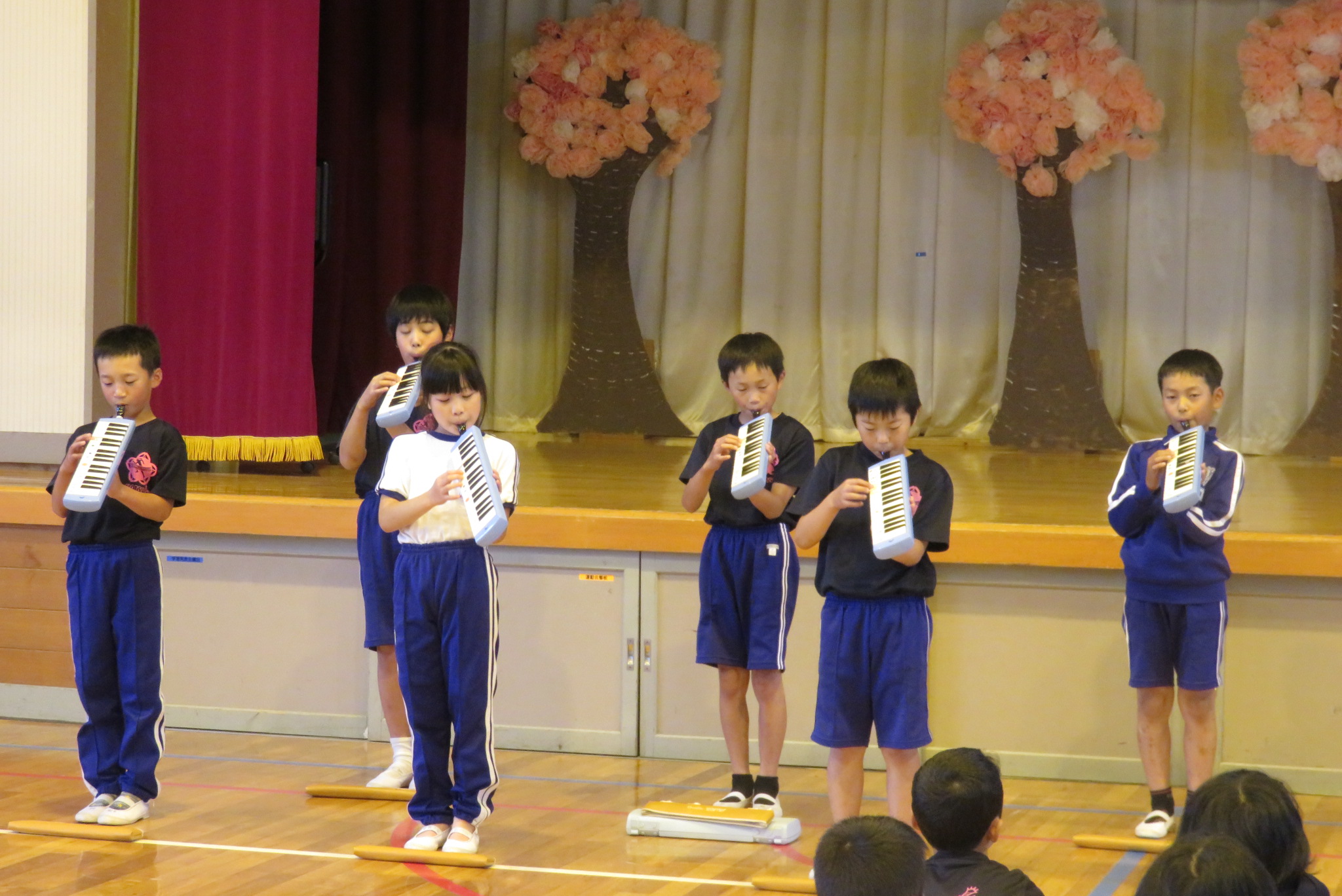 次に、4年生の学年発表が行われました。今回は合奏と歌の発表でした。