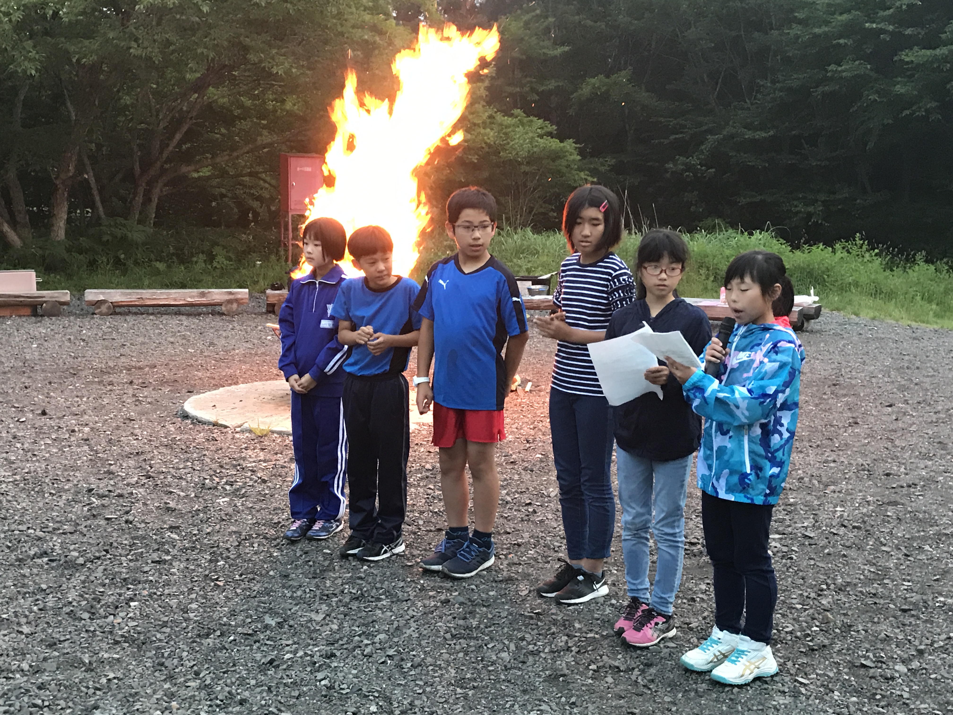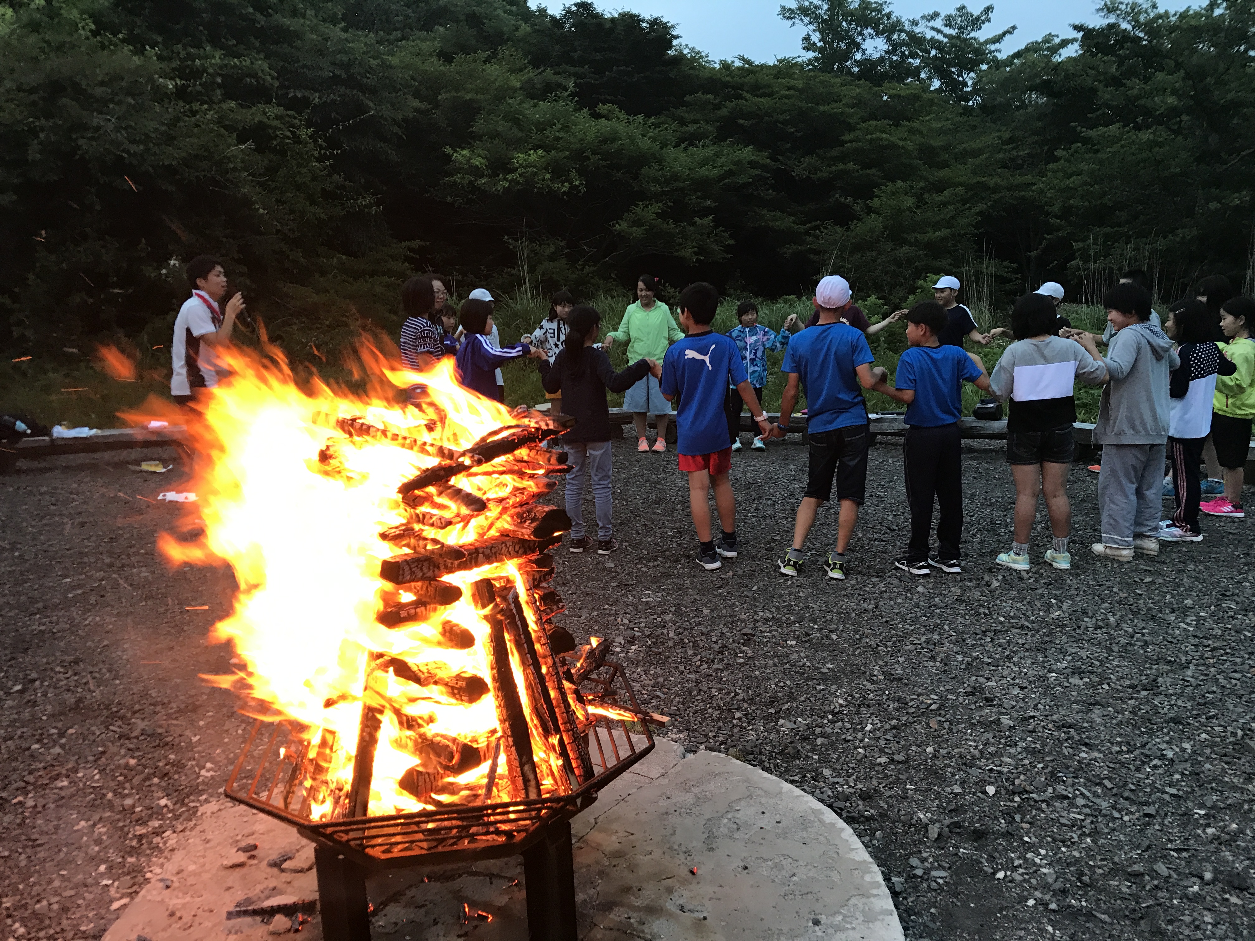 今日の夜は、施設最後の行事であるキャンプファイヤーが予定されています。大いに盛り上がってください。