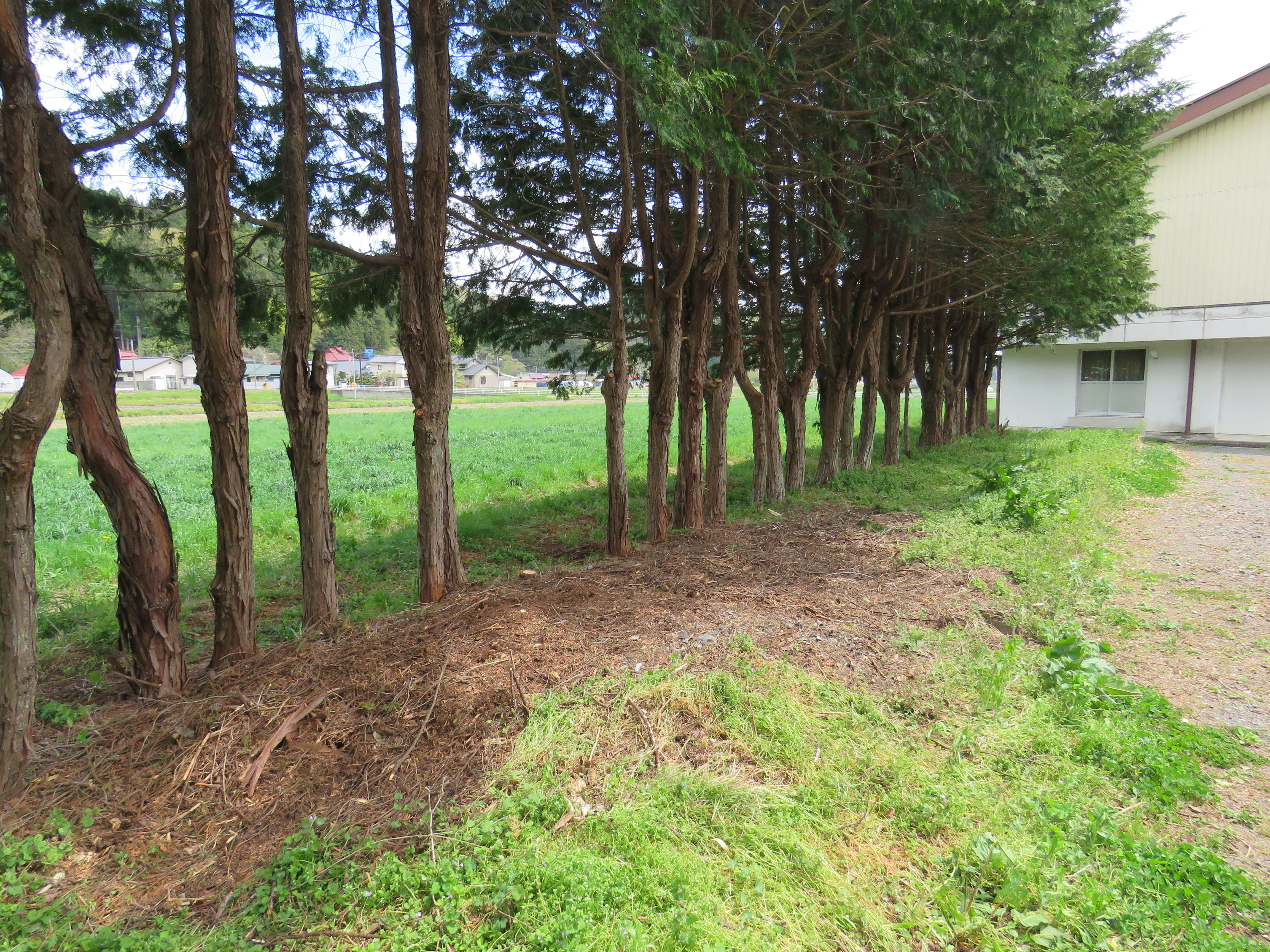 まわりから校舎や校庭がよく見えるようになり,大変スッキリしました。シルバー人材センターの皆様,ありがとうございました。