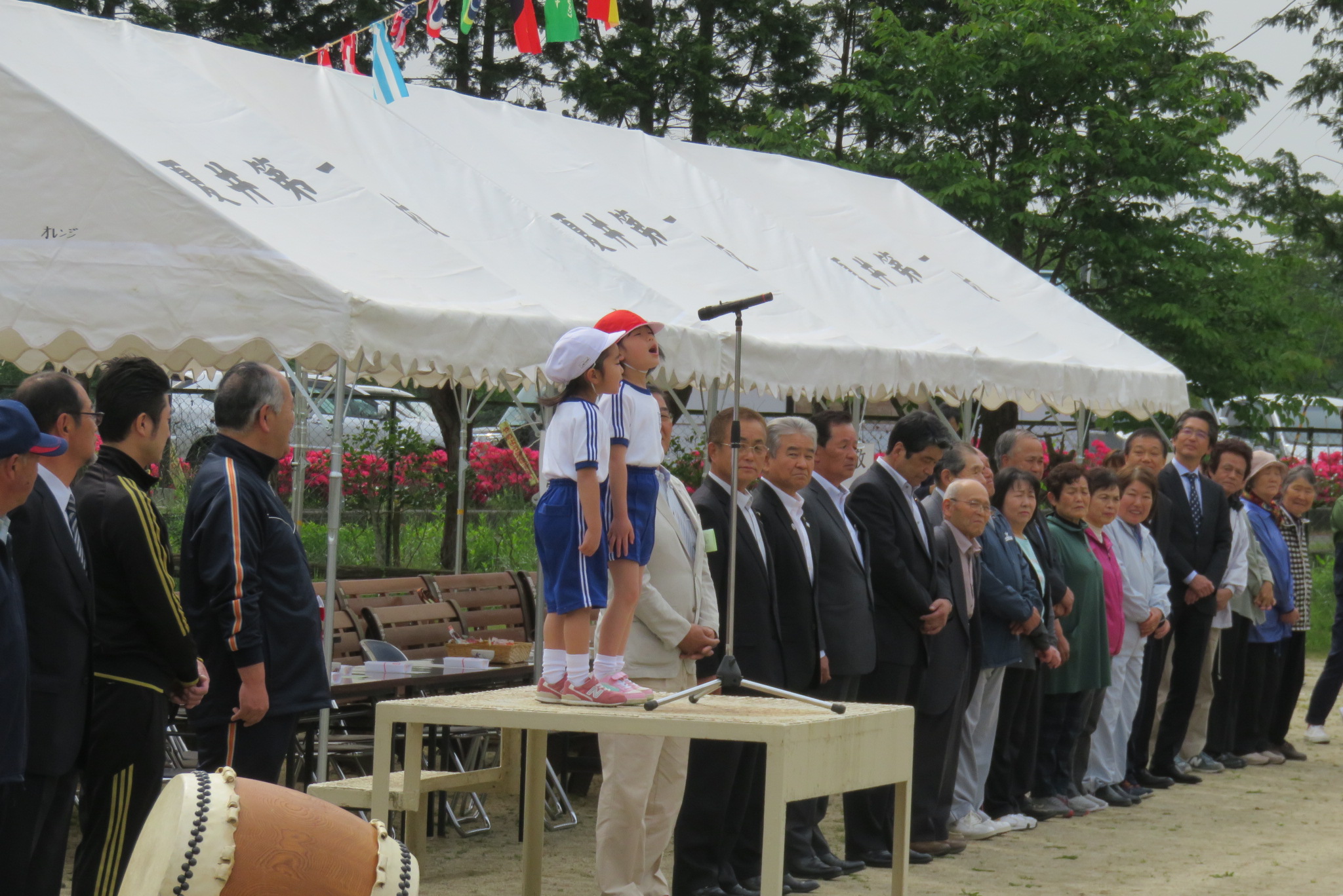 絶好の運動会日和となった12日、平成30年度夏井第一小学校連合大運動会が実施されました。町長様、副議長様、教育長様を始め多数のご来賓のご臨席を賜り盛大に実施されました。