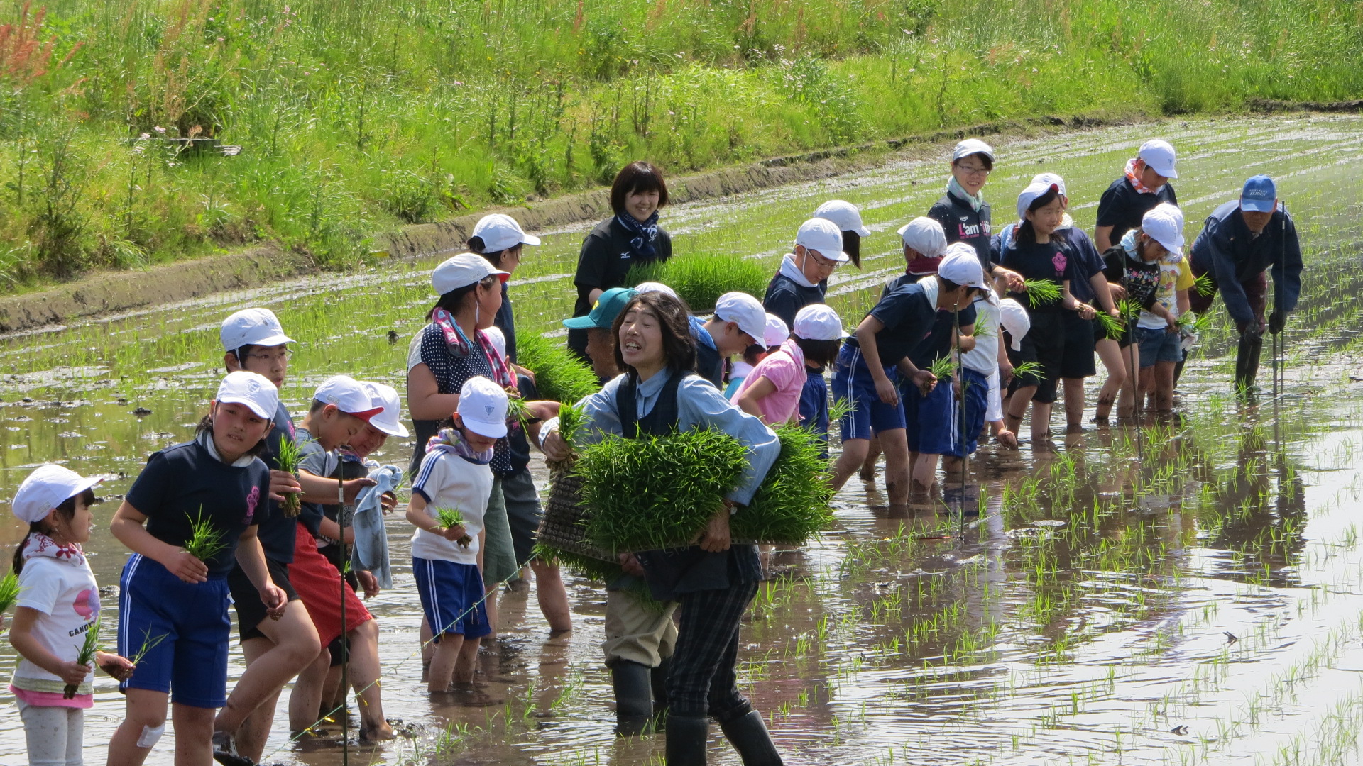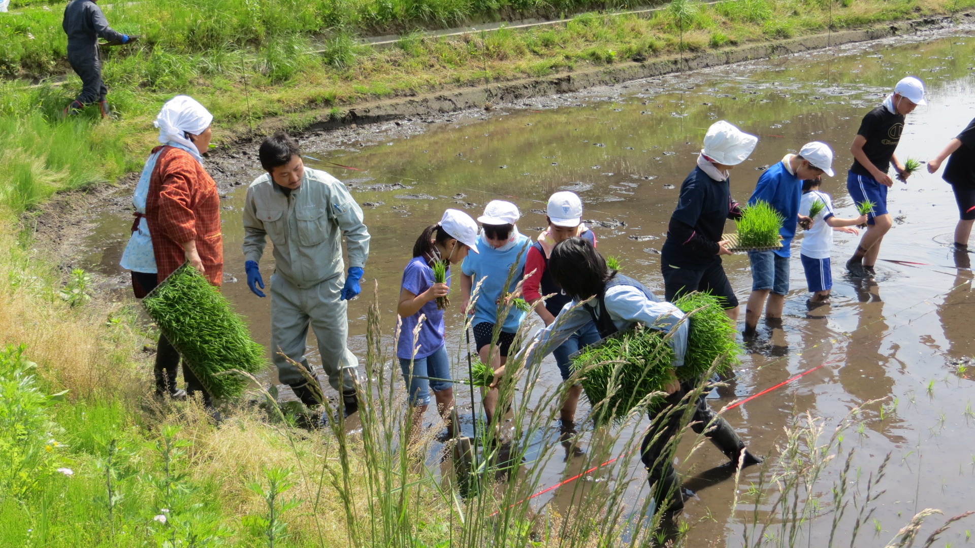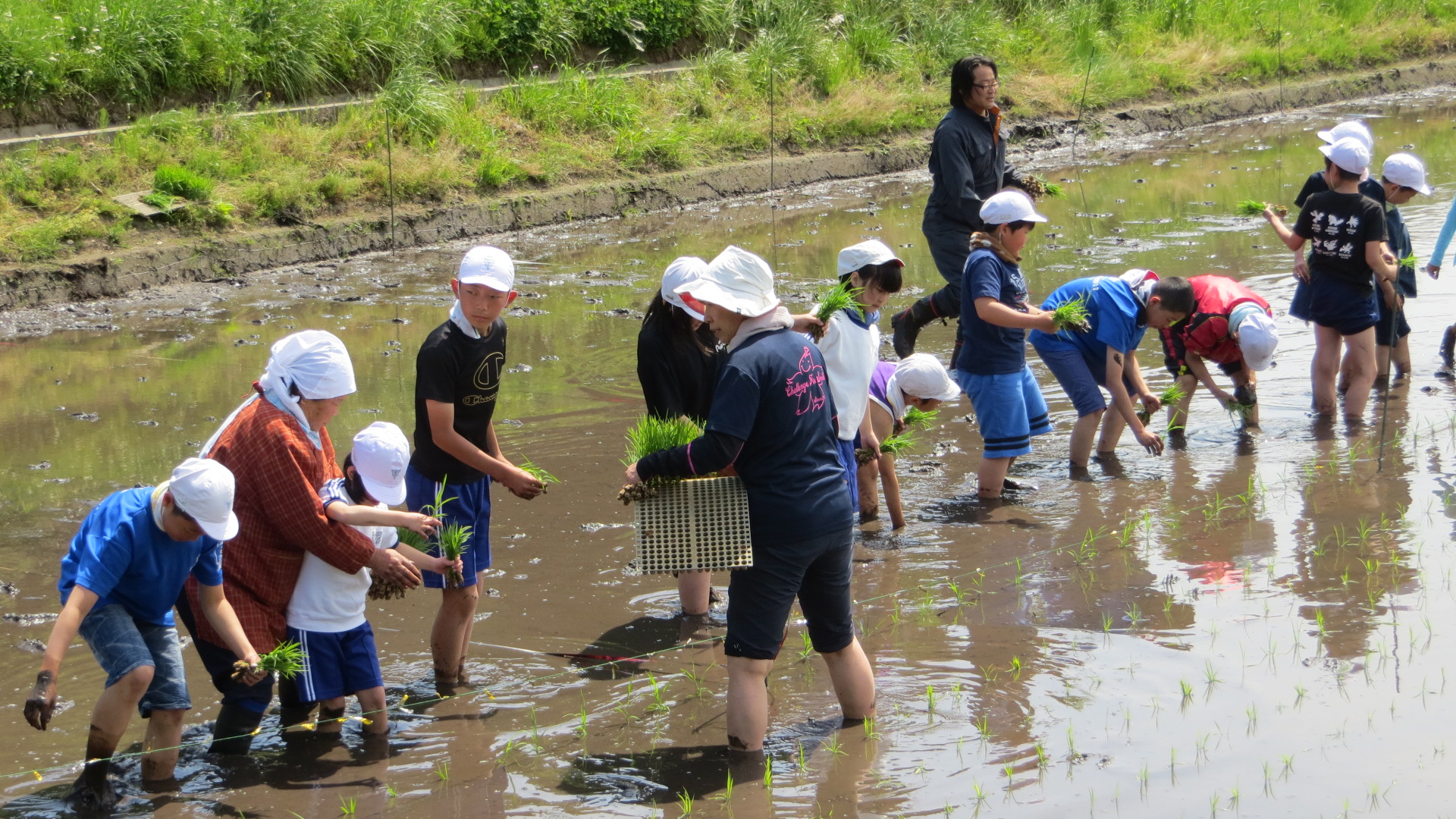 全校生で田植えを行いました
