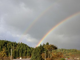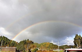 二重虹(ダブルレインボー)は幸運をもたらす縁起物として海外でも有名です。夏一小にも,滅多に見られない「ダブルレインボー」が,今朝出現しました。