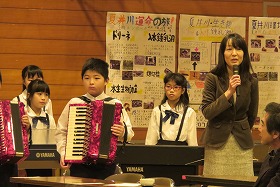 本校の特設音楽部が小野町小・中学校音楽祭に参加しました。コンクールを終えてからも,楽器の一つ一つの演奏方法、その楽器の特徴、演奏を合わせるポイントなどを確認して,今日の本番を迎えました。