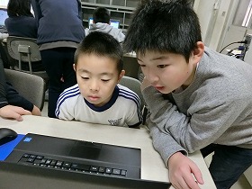 1年生と6年生がいっしょに朝の学習タイムPCを使ってEライブラリ学習をしました。