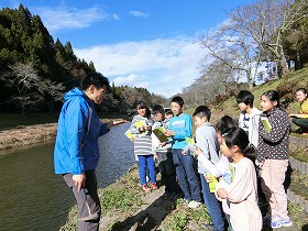 5年生の「流れる水のはたらき」と6年生の「大地の作りと変化」には密接な系統性があります。今回,学校の周辺の山はどんな岩石でできているか,そしてな流水は大地にどのような作用をもたらすのか,学年をリンクさせながら学習に取り組みました。