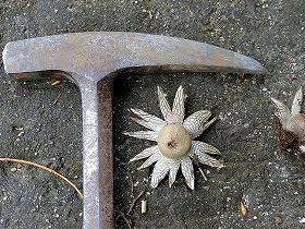 ハンマーをスケールがわりに写しました。その正体は・・・「ツチグリ」といいます。このツチグリはキノコの一種で,小さいころ食べた記憶があります。