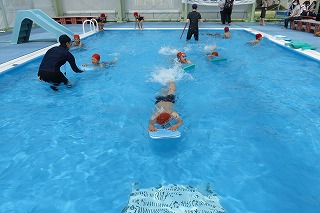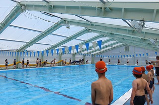 今日は,授業参観・学校保健委員会・学級懇談・PTA専門委員会が実施されました。授業参観では,町内のB&Gで全校一斉のプール授業の様子を参観していただきました。