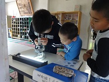 6年生に使い方を教えてもらいながら,様々なものを観察しているようでした。ミクロの世界は本当に不思議だね。
