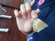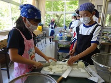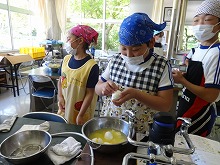 今日は,5年生が初めての調理実習が行われました。なれない道具に悪戦苦闘・・・でもおいしくできたようですね。