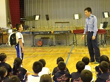今日は,お二人の警察官をゲストティーチャーとしてお招きし,防犯教室が実施されました。