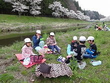 満開の夏井千本桜の下,みんなでお弁当タイム!