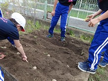 ベランダーで観察をしているジャガイモやグラジオラスの芽が出てきました。予想では,「5月中は,出ないんじゃないのかな。」と,言っていた児童でしたが・・・