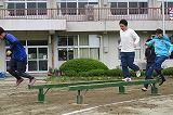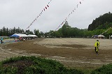 前日の雨により,グランドコンディションが・・・でも,安心。夏井第一小学校のPTAのみなさんによるサポートで素晴らしいグランドが整備されました。