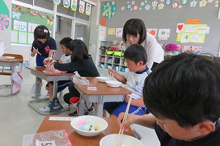学校でも,おうちでも,正しいはしの持ち方でいろいろなものを食べましょう。