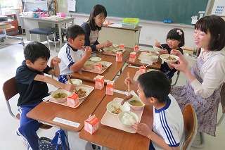 5月18日には,小野町給食センターの栄養教諭さんをお招きして