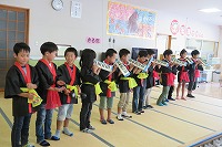 27日(火)の5校時に,1,2年生17名で,町のデイサービスセンターへ行ってきました。「おじいちゃん,おばあちゃんを喜ばせたい。」というめあてのもと練習を頑張り,元気に発表することができました。おじいちゃん,おばあちゃんたちは,終始笑顔で楽しんでくれました。