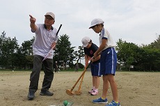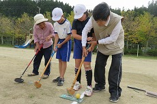 今日は,3・4年生と地域のみさんとで,グラウンドゴルフが実施されました。
