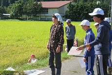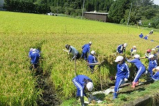 地域の皆さんと協力して,全校生で稲刈りを実施しました。