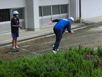 14日の町陸上大会に向けて,突然の雨にも負けず,5,6年生は頑張っていました!