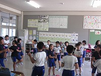 こまち荘の方々に喜んでもらうために3・4年生が一生懸命によさこいの練習をしています。