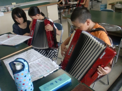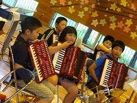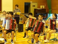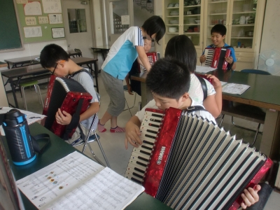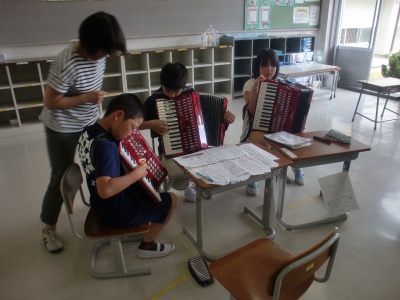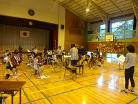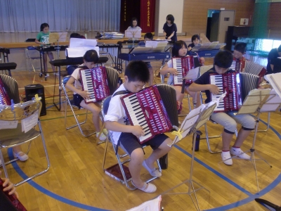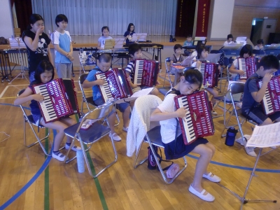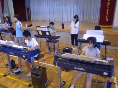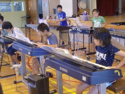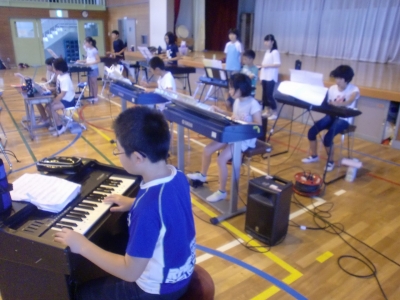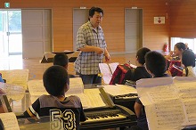 伝統ある夏井第一小学校の音楽部卒業生が講師として来校し、的確に指導をしてくれました。子どもたちは真剣な顔つきで練習に取り組みました。