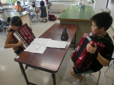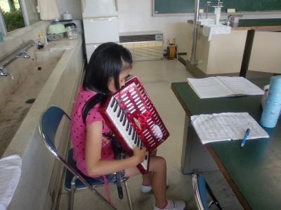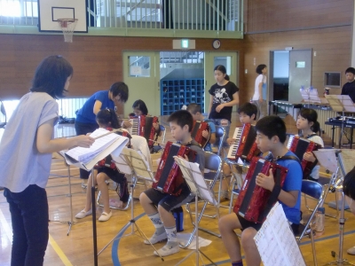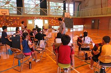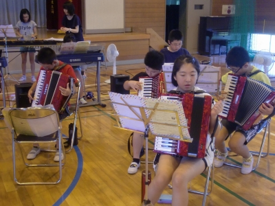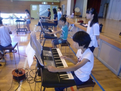 台風後の雨天の中、体育館ではピーンと張り詰めた空気の中、真剣に音楽に向き合う夏井っ子の姿がみられました。