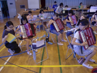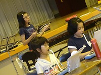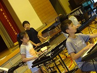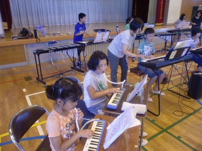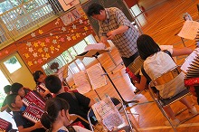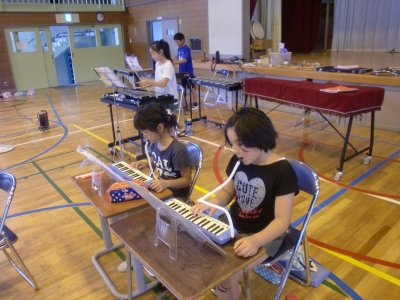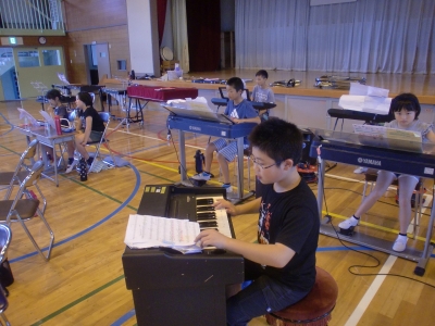 2016年8月18日 14時17分 台風後の雨天の中、体育館ではピーンと張り詰めた空気の中、真剣に音楽に向き合う夏井っ子の姿がみられました。
