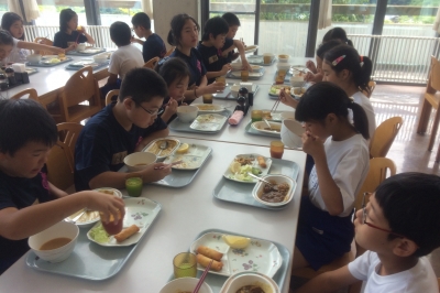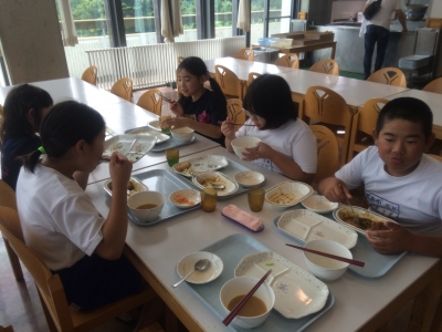 自然の家のバイキング。グループごとに、仲良く食べました。