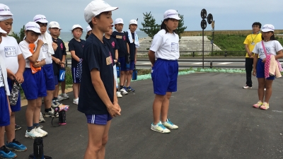 そして、四倉海岸沿いで海をバックに閉会式です。夏井小と交流をしながら、夏井川についてたくさん学習できた1日でした。