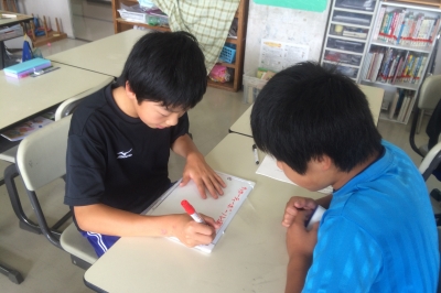 書写の学習で、伝えたいことを伝えるために文字の大きさや配列、筆記具の使い方について学びました。