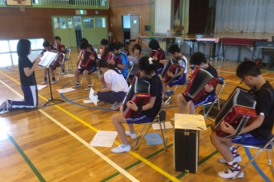 今日はアコーディオンの子たちが、音を合わせるために集まりました。