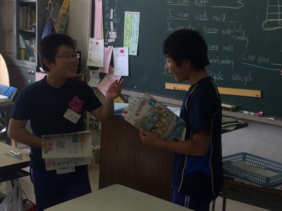インタビューでは、今日学習した英語の表現を使いこなす姿が見られます。